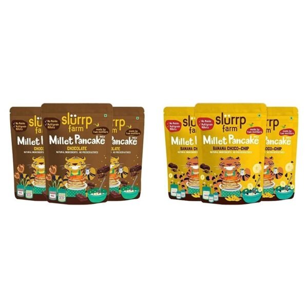 Slurrp Farm No Maida Pancake Mix Chocolate 3x150g & Slurrp Farm No Maida Pancake Mix Banana Chocochip 3x150g – Fast Shipping to USA & Canada