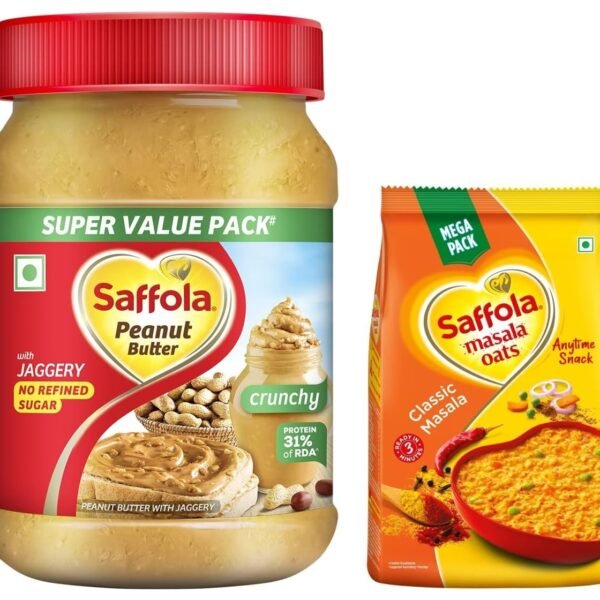 Saffola Peanut Butter Crunchy| High Protein Peanut Butter | Only Jaggery, No Refined Sugar, 900g & Saffola Masala Oats | Tasty Evening Snack| Healthy Snack| Veggie Twist| 500g – Fast Shipping to USA & Canada
