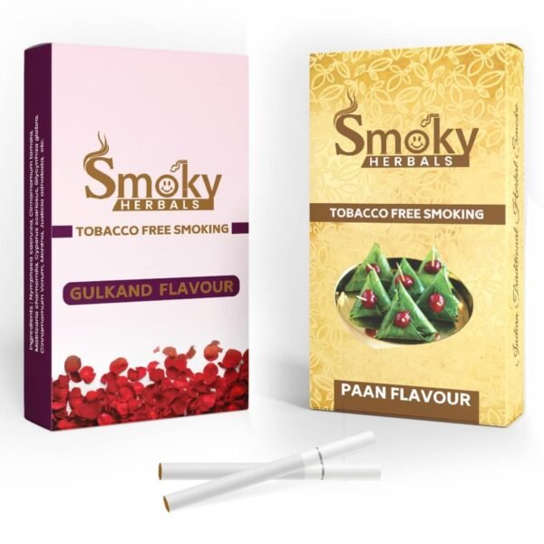 Smoky Herbals Pack of 2 Flavours 100% Tobacco & Nicotine Free Cigarette (PAAN – GULKAND) – 10Sticks x 2 – Fast Shipping to USA & Canada