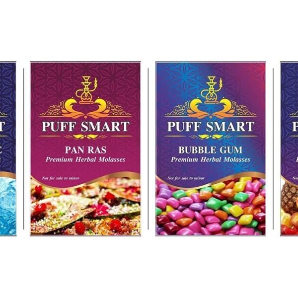PUFF SMART Herbal Molasses Pan Ras, Brain-o-Freeze, Bubblegum and Mixfruit (Set of 4) (100% Tobacco and Nicotine Free) – Fast Shipping to USA & Canada