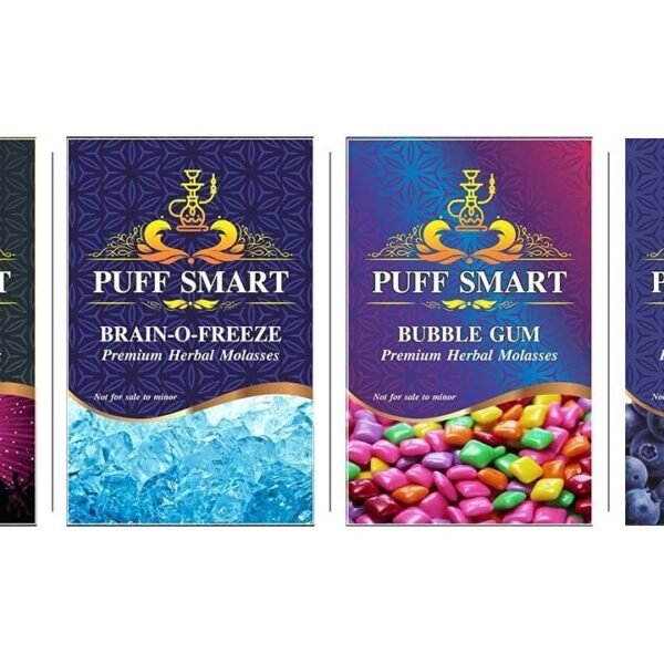 PUFF SMART Herbal Molasses Brain-o-Freeze, Bubblegum, Crazy Night and Blueberry (Set of 4) (100% Tobacco and Nicotine Free) – Fast Shipping to USA & Canada
