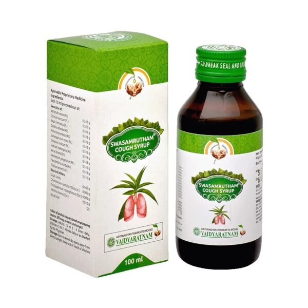 Vaidyaratnam Swasamritham – 100 ml, Ayurvedic Relief for Cough & Breathlessness | Cough Relief | Ayurvedic Medicine for Breathlessness