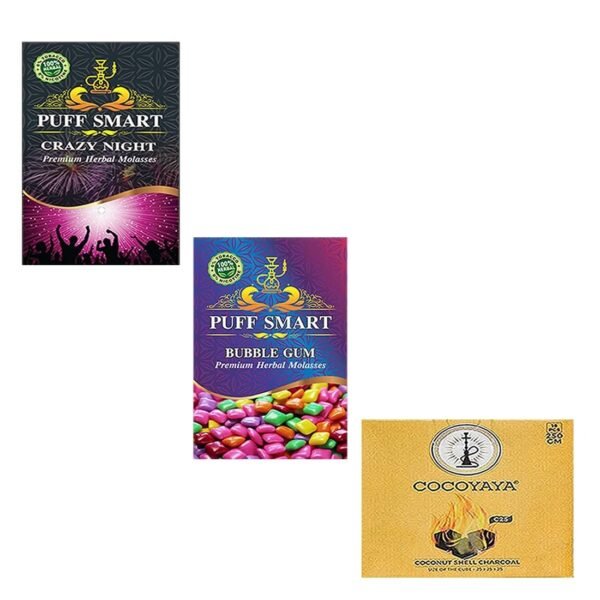 PUFF SMART Premium Herbal Molasses Pan Ras, Bubblegum with 250gm Coconut Coal Combo (Set of 3) (100% Tobacco and Nicotine Free) – Fast Shipping to USA & Canada