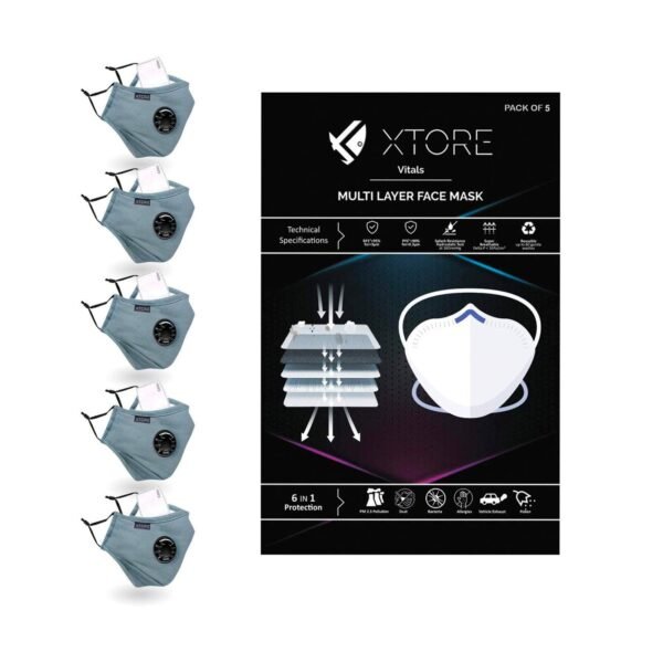 Xtore N-95 FDA CE Certified Antipollution cotton mask | Reusable | Washable (Pack of 5 mask, 5 Filters, Cloud Grey) – Fast Shipping to USA & Canada