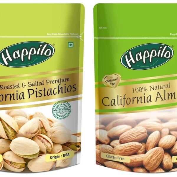 Happilo Premium Californian Roasted and Salted Pistachios, 200g (Pack of 1) and Happilo 100% Natural Premium Californian Almonds, 200g – Fast Shipping to USA & Canada