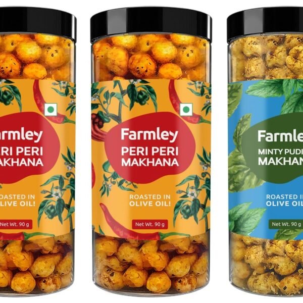 Farmley Peri Peri Roasted & Flavored Makhana Jar 180 g (Pack of 2, Each 90 g) & Farmley Roasted & Flavoured Minty Pudina Healthy Makhana Snacks 90 gm – Fast Shipping to USA & Canada
