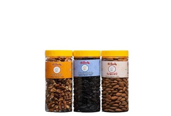 41 foods Dry fruits combo pack Black Raisins Almonds Walnuts | akhrot badam kismis (150GM X 3) 450 GM – Fast Shipping to USA & Canada