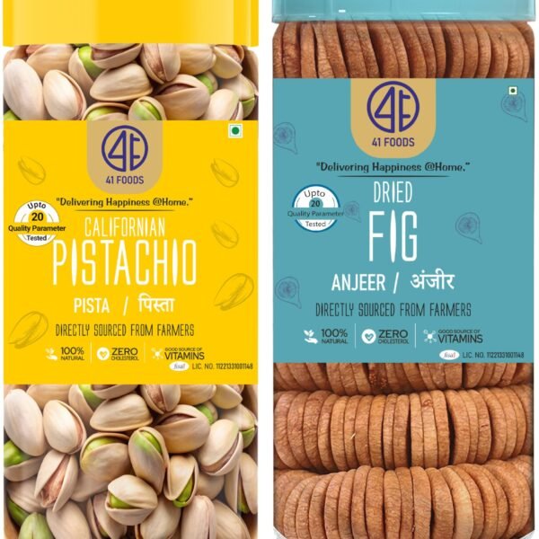 41 FOODS Premium Dry Fruits and Nuts Combo of Healthy Fresh Figs Roasted and Salted Pistachios Nutritious Crunchy Pista Anjeer 200Gm X 2 400GM – Fast Shipping to USA & Canada