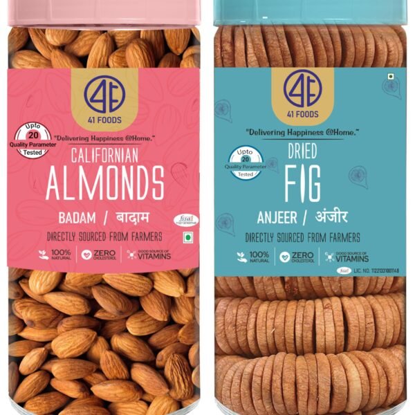 41 FOODS Premium Dry Fruits and Nuts Combo Healthy Crunchy Almonds and Figs Nutritious Tasty Badam Anjeer Rich in Protein and Fiber 200Gm X 2 400GM – Fast Shipping to USA & Canada