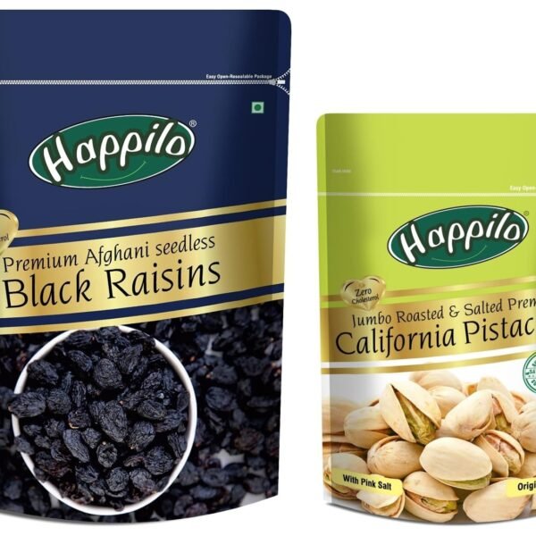 Happilo Premium Californian Roasted and Salted Pistachios, 200g & Premium Afghani Seedless Black Raisins, 250g – Fast Shipping to USA & Canada