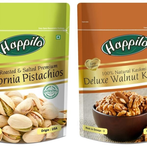 Happilo Premium Californian Roasted and Salted Pistachios, 200g & Deluxe 100% Natural Kashmiri Walnut Kernels, 200g Combo – Fast Shipping to USA & Canada