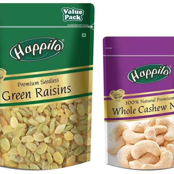 Happilo 100% Natural Premium Whole Cashews, 200g + Happilo Premium Seedless Green Raisins Value Pack Pouch, 500 g – Fast Shipping to USA & Canada