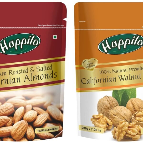 Happilo Premium 100% Natural Californian Walnut Kernels,Dried,200g & Premium Californian Almonds Roasted & Salted 200g, Dry Fruit, High Protien Snack and Super Healthy Crunchy Nuts – Fast Shipping to USA & Canada