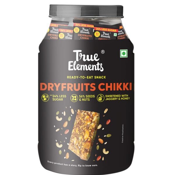 True Elements Dry fruit Chikki 700g (Pack of 35) – Made with Peanuts, Almonds, Cashews & Pista | Gajak with Jaggery Powder | 24% Less Sugar – Fast Shipping to USA & Canada