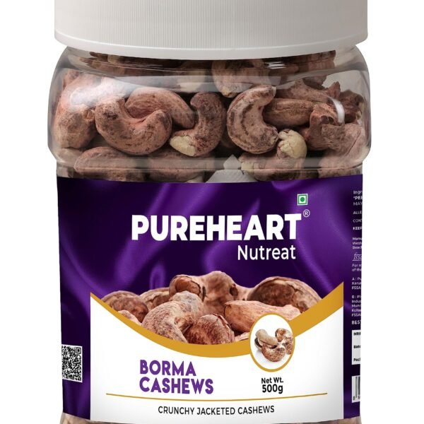 Pureheart Borma Cashews/Skin Unpeeled Cashews (500 gm) Natural Whole Kaju – Nutty Flavor Cashew Nuts with Skin – Fast Shipping to USA & Canada