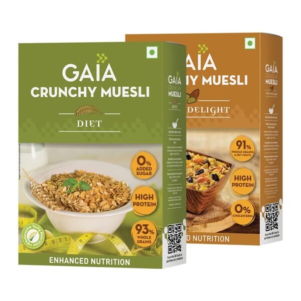 GAIA Muesli Combo Pack Nutty Delight 400 gm and Diet Sugar free 400 gm| High Fiber |No Trans Fat | Essential nutrients | Rich in Protein|| No cholesterol| Helps in weight management (Super Saver Pack) – Fast Shipping to USA & Canada