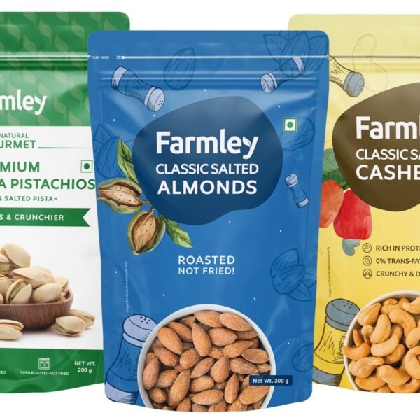 Farmley Dry Fruits Combos I 600g (3 x 200g) Farmley Salted Roasted Cashews | California Roasted Salted Pistachios | Classic Salted Roasted Almonds | Rich in Protein | Crunchy & Delicious – Fast Shipping to USA & Canada