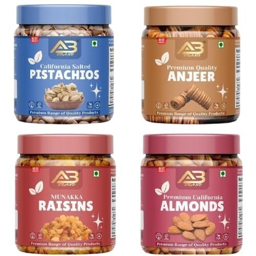 AB BRAND Premium Dry Fruits Combo Pack ? 250g Each of Almonds, Raisins, Figs (Anjeer), and Roasted Pistachios | Healthy & Fresh Snacks for Gifting, Cooking & Daily Use (Pack of 4) – Fast Shipping to USA & Canada