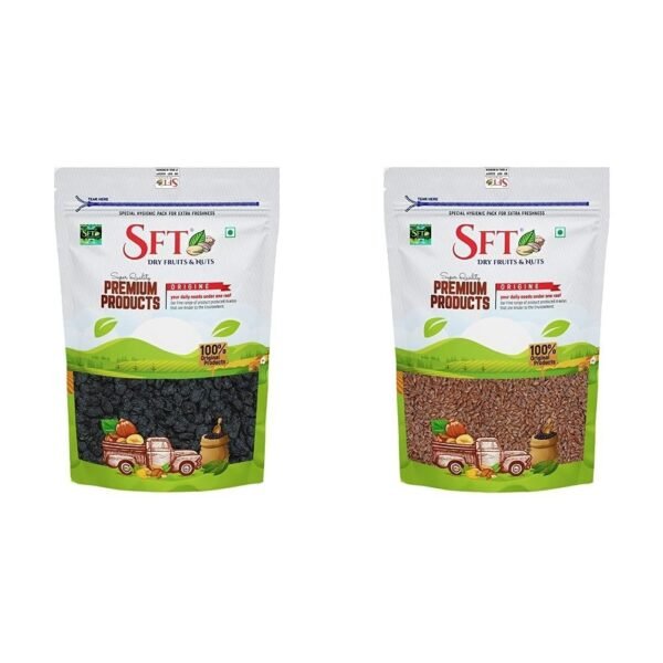 SFT Afghani Seedless (Black Raisin) Dried Grapes, Handpicked Pouch, 1000 g & SFT Alsi Fresh Flax Seeds, 1 Kg, Pack Of 1 – Fast Shipping to USA & Canada