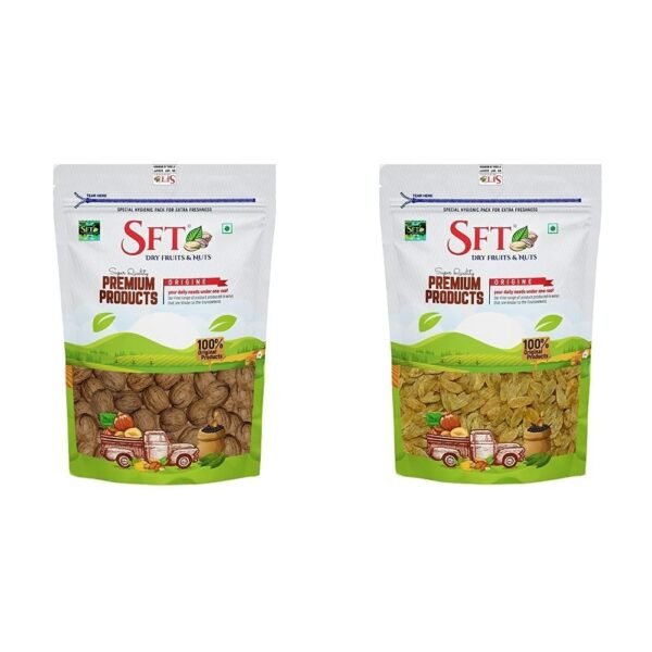 SFT Walnut Inshell (Akhrot) 1Kg & SFT Raisins Afghani Green Long (Kishmish) Seedless, Dry Grapes 1 Kg – Fast Shipping to USA & Canada