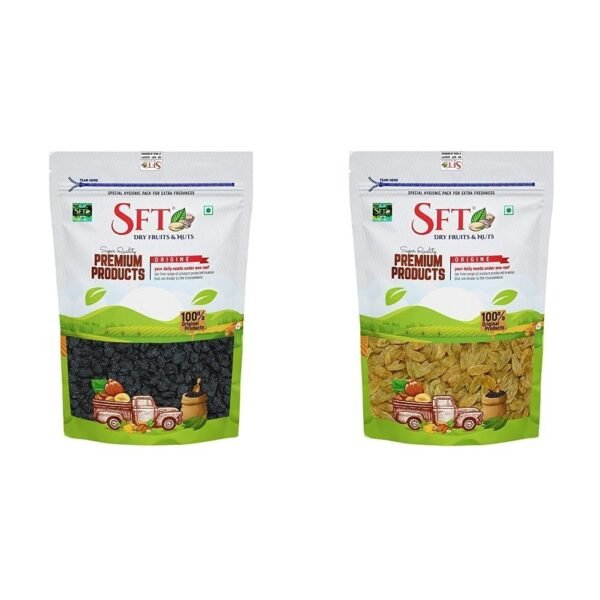 SFT Afghani Seedless (Black Raisin) Dried Grapes, Handpicked Pouch, 1000 g & SFT Raisins Afghani Green Long (Kishmish) Seedless, Dry Grapes 1 Kg – Fast Shipping to USA & Canada