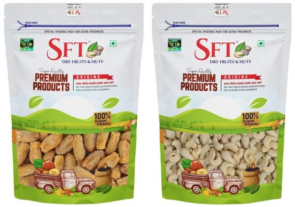 SFT Dried Dates Yellow/Sukha Khajoor (Pila Chuara) 1 Kg & Cashew Kernels Nuts, 100% Pure Mangalore Cashews, Handpicked Extra White & Extra Crispy (Kaju Sabut, Whole Cashews) [Grade – W 320 No] 1kg – Fast Shipping to USA & Canada