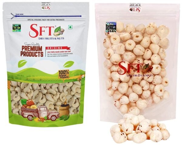 SFT Cashew Kernels Nuts, 100% Pure Mangalore Cashews, Handpicked Extra White & Extra Crispy 1kg & Lotus Seed Pop / Gorgon Nut Puffed Kernels Fox Nut Organic (Grade – Big Size) 500Gm – Fast Shipping to USA & Canada
