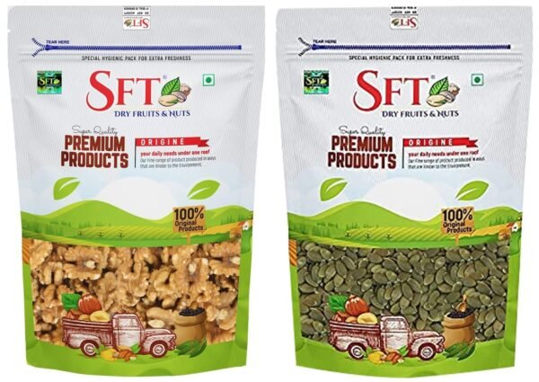 SFT Pumpkin Whole Seeds 1 Kg & Walnuts Kernels (Akhrot Giri) [Grade – 2 Pieces] 1Kg, Dry Fruits – Fast Shipping to USA & Canada