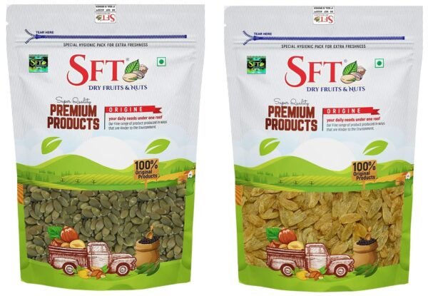 SFT Pumpkin Whole Seeds 1 Kg & Raisins Afghani Green Handpicked (Kishmish) Seedless, Dry Grapes 1kg – Fast Shipping to USA & Canada