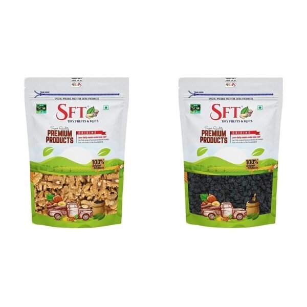 SFT Walnut Kernels (Akhrot Giri) [Grade – 2 Pieces] 1Kg & SFT Afghani Seedless (Black Raisin) Dried Grapes, Handpicked Pouch, 1000 g – Fast Shipping to USA & Canada