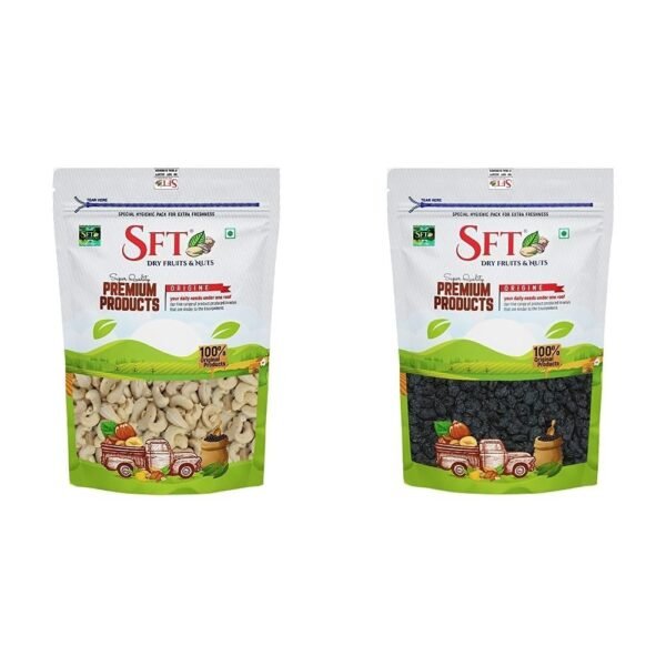 SFT Cashew Nut Whole (Kaju) 1 Kg & Afghani Seedless (Black Raisin) Dried Grapes, Handpicked Pouch, 1000 G – Fast Shipping to USA & Canada