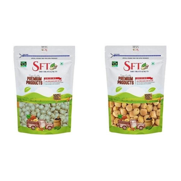 SFT Fox Nut (Phool Makhana) Lotus Seed 1 Kg & SFT Dried Dates Brown,Black/Sukha Khajoor (Kala Chuara) 1 Kg – Fast Shipping to USA & Canada