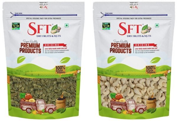 SFT Pumpkin Whole Seeds 1 Kg & Cashew Kernels Nuts, 100% Pure Mangalore Cashews, Handpicked Extra White & Extra Crispy (Kaju Sabut, Whole Cashews) [Grade – W 320 No] 1kg – Fast Shipping to USA & Canada