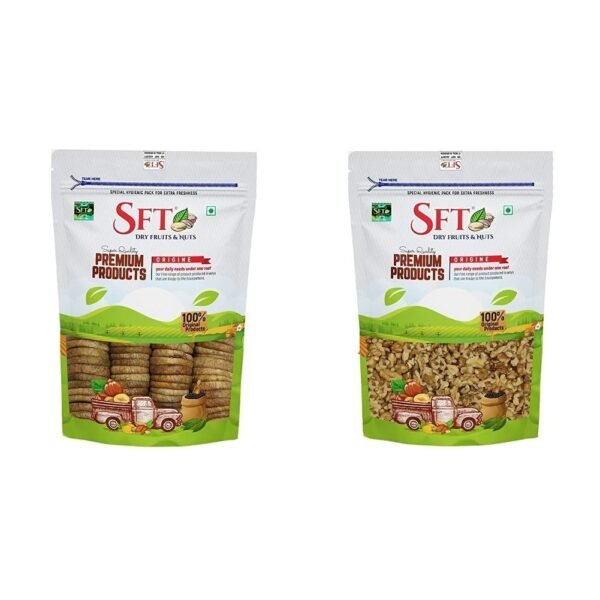 SFT Anjeer (Dried Figs) 1Kg & SFT Walnut Kernels Broken (Akhrot Giri) [raw,Grade – 8 Pieces] 1 Kg – Fast Shipping to USA & Canada