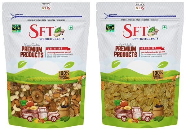 SFT Raisins Afghani Green Handpicked (Kishmish) Seedless, Dry Grapes 1kg & Mixed Dry Fruits Nuts Pouch, 1000 g & Walnut Kernels Whole (Sabut Akhrot Giri) Gola Akhrot, Both Side Full Size Kernels, 1kg – Fast Shipping to USA & Canada