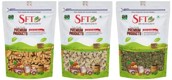 SFT Pumpkin Whole Seeds 1 Kg & Cashew Kernels Nuts, 100% Pure Mangalore Cashews, Handpicked Extra White & Extra Crispy [Grade – W 320 No] 1kg & Walnuts Kernels [Grade – 2 Pieces] 1Kg, Dry Fruits – Fast Shipping to USA & Canada