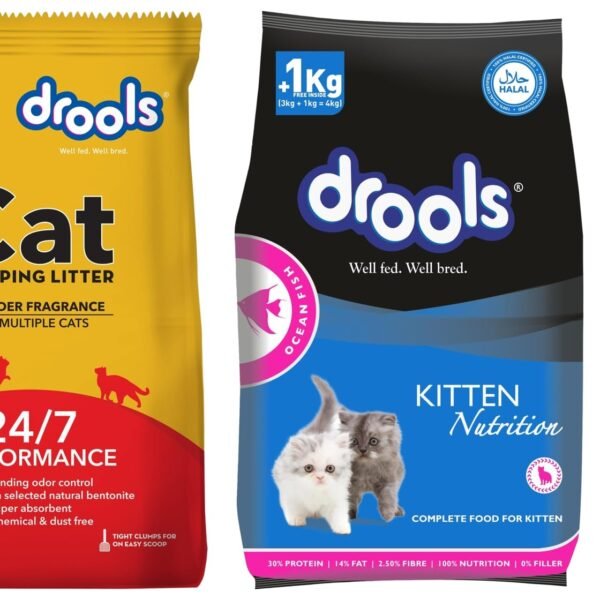 Drools Kitten, Ocean Fish – 4kg (3kg + 1kg Free Food Inside) & Drools Clumping Lavender Fragrance Cat Litter (for Multiple Cats), 5kg & Drools Complete Cat Care Shampoo, 200ml – Fast Shipping to USA & Canada