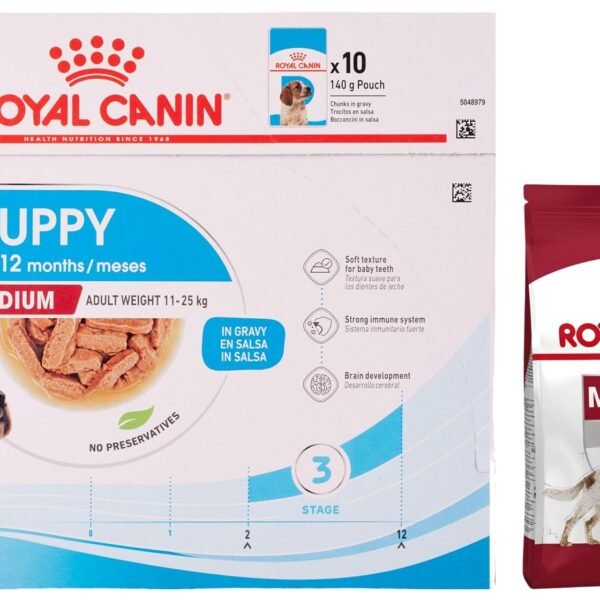 Royal Canin Medium Adult, 4 kg & Royal Canin Medium Puppy Dog Food, Gravy 14(Packof10) with – Fast Shipping to USA & Canada