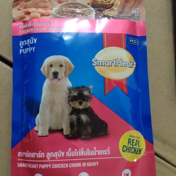 Smart Heart Chicken Chunk in Gravy Wet Puppy Food for Strong Muscle, Bone & Teeth, 80 g (Pack of 24) – Fast Shipping to USA & Canada