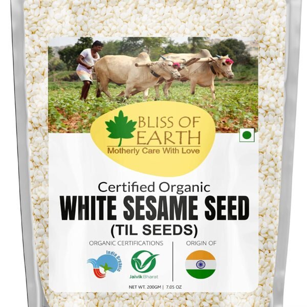 Bliss of Earth Organic Sesame Seeds 200 gm White For Eating, Raw Til Seeds – Fast Shipping to USA & Canada