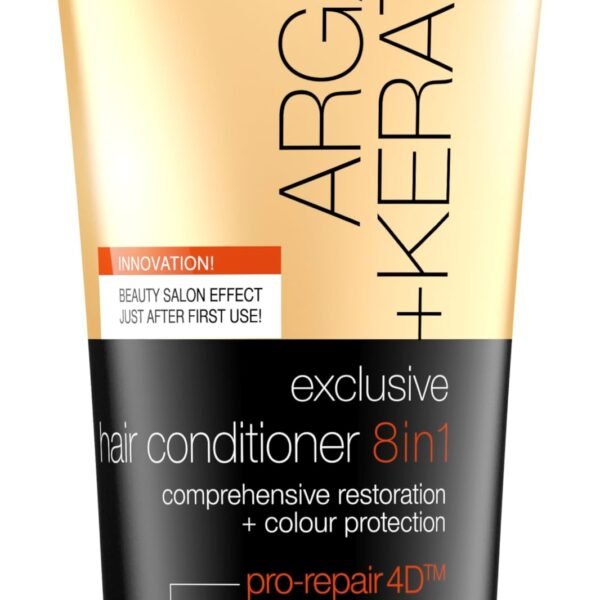 Eveline Cosmetics 8 in 1 (200ml) Hair Conditioner, Moisturises and Restores Coloured, Highlighted and Damaged Hair, Shine and Softness, Argan + Keratin Exclusive – Fast Shipping to USA & Canada