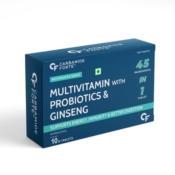 Carbamide Forte Multivitamin for Men with Probiotics Supplement – 10 Veg Tablets | Comprehensive Multivitamin Tablets for Men with Ginseng, Grape Seed Extract, Vitamin C, and Vitamin K2 MK7 – Fast Shipping to USA