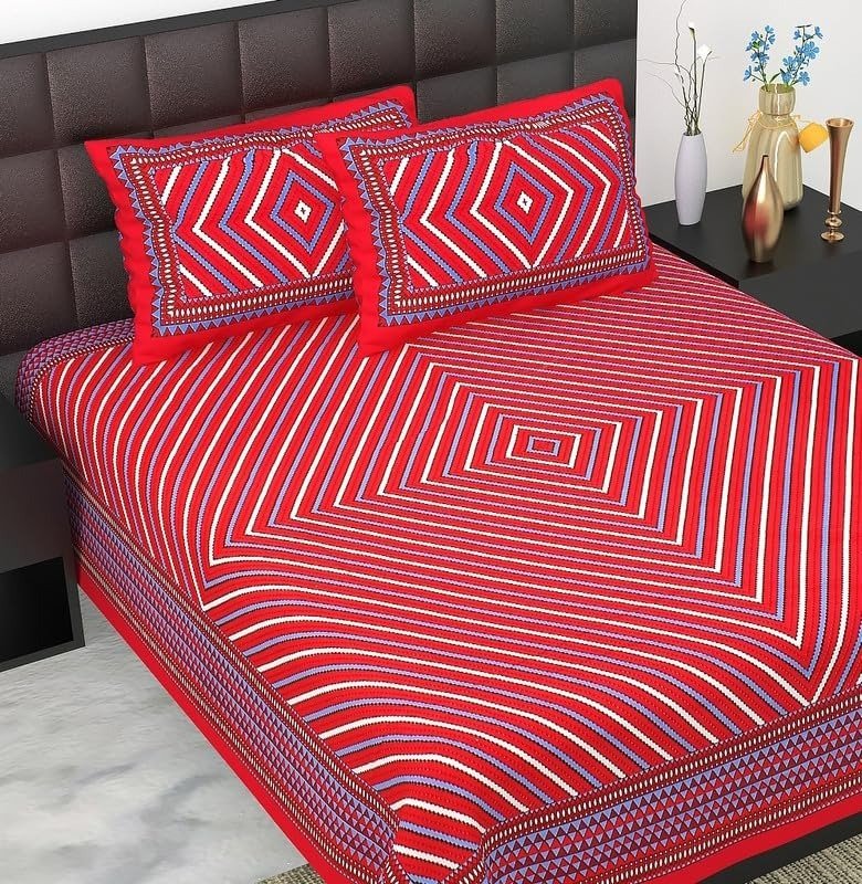 Give your room a vibrant look and feel with collection of JAIPUR PRINTS available on Amazon. This bedsheet is made from cotton and is available in Multicolour. The bedsheet features a thread count of 300 and can be used for Full sized beds. You can also mix and match similar pillows to give your resting space a complete look.