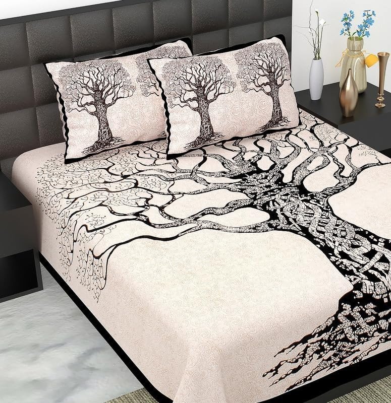 Give your room a vibrant look and feel with collection of JAIPUR PRINTS available on Amazon. This bedsheet is made from cotton and is available in Multicolour. The bedsheet features a thread count of 300 and can be used for Full sized beds. You can also mix and match similar pillows to give your resting space a complete look.