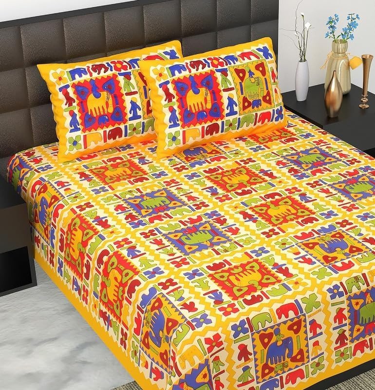 100% Cotton bedsheet Double Bed Jaipuri Rajasthani Fabric Multicolor Cotton Bedsheet Bazar with 2 Pillow Covers – MultiColors117 – Fast Shipping to USA & Canada