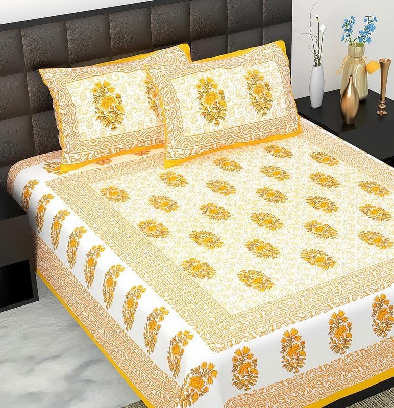 Give your room a vibrant look and feel with collection of JAIPUR PRINTS available on Amazon. This bedsheet is made from cotton and is available in Multicolour. The bedsheet features a thread count of 300 and can be used for Full sized beds. You can also mix and match similar pillows to give your resting space a complete look.
