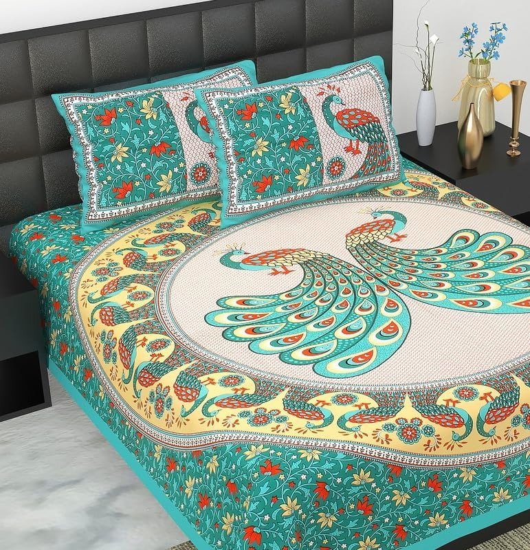 Give your room a vibrant look and feel with collection of JAIPUR PRINTS available on Amazon. This bedsheet is made from cotton and is available in Multicolour. The bedsheet features a thread count of 300 and can be used for Full sized beds. You can also mix and match similar pillows to give your resting space a complete look.