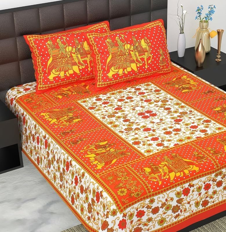 100% Cotton bedsheet Double Bed Jaipuri Rajasthani Fabric Multicolor Cotton Bedsheet Bazar with 2 Pillow Covers – MultiColors150 – Fast Shipping to USA & Canada