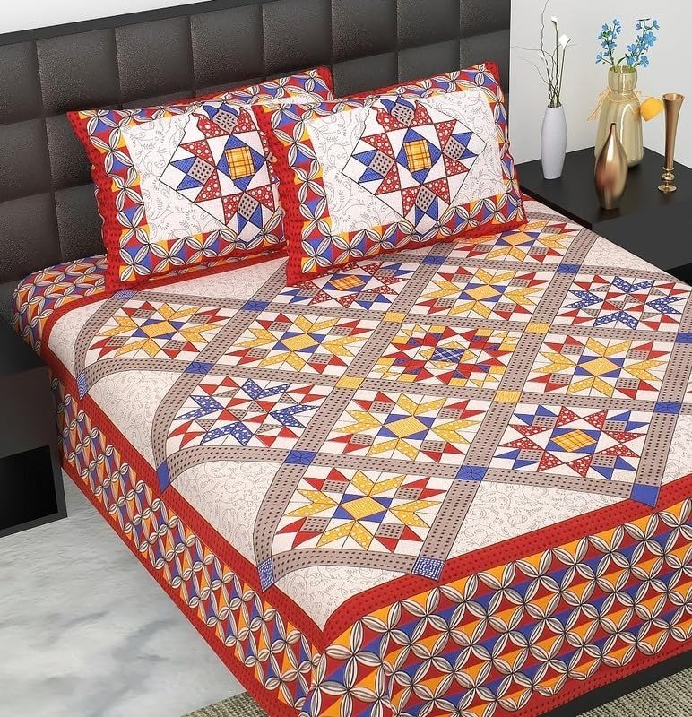 100% Cotton bedsheet Double Bed Jaipuri Rajasthani Fabric Multicolor Cotton Bedsheet Bazar with 2 Pillow Covers – MultiColors167 – Fast Shipping to USA & Canada