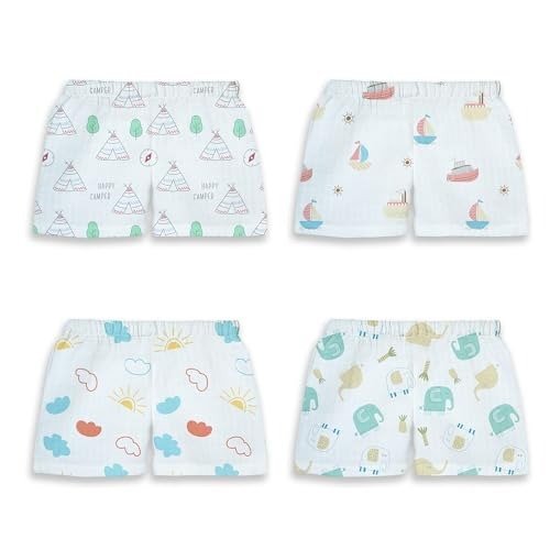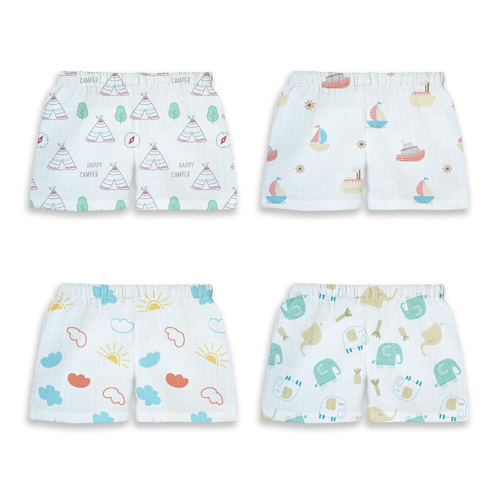 1ST STEP 100% Soft Muslin Cotton Baby Shorts – Pack of 4 – Fast Shipping to USA & Canada